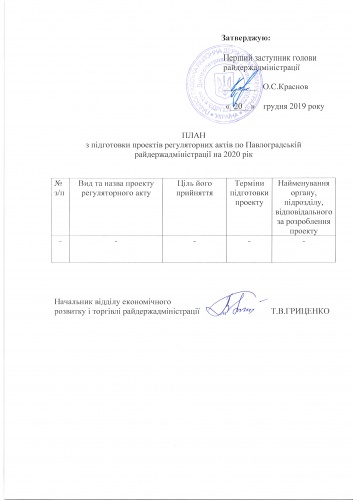 - ПЛАН з підготовки пректів регуляторних актів по Павлоградській райдержадміністрації на 2021 рік
