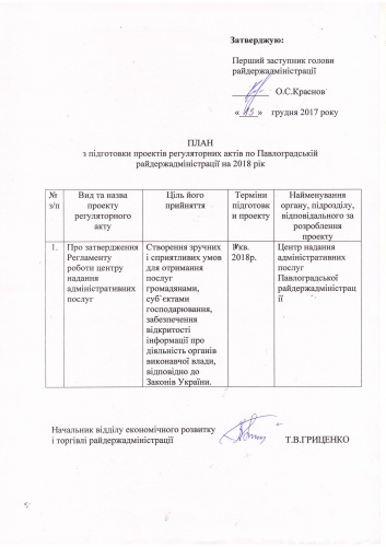 - План з підготовки проектів регуляторних актів по Павлоградській райдержадміністрації на 2016 рік