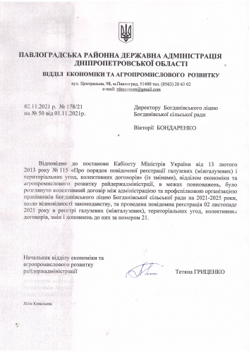 Кол.договір Богданівський ліцей Богданівської сільської ради