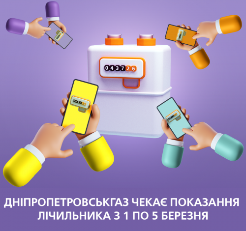 АТ «Дніпропетровськгаз» чекає від мешканців Дніпропетровської області показання приладів обліку газу. Їх необхідно передавати у період з 1 по 5 березня. Вчасно передані дані гарантують точність майбутніх нарахувань кожного споживача області.
